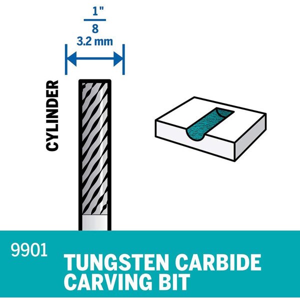 Dremel 9901 Rotary 1/8 in. Tungsten Carbide Carving Bit, Cylinder