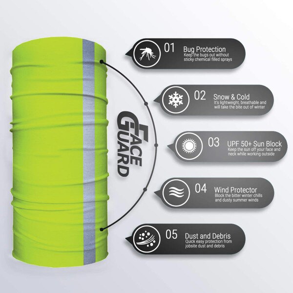 Made to be worn in 12+ different ways, these multi-use face shields are designed for long and durable use. These moisture-wicking masks are great for construction, yard-work, recreational, and everyday use. Accompanied by breathable fabric that remains insulating, these elastic wraps are made for year-around use in both wet and dry climates. Whether it is keeping debris and dust out of your face, or keeping the cold wind out, these wraps are made to last.