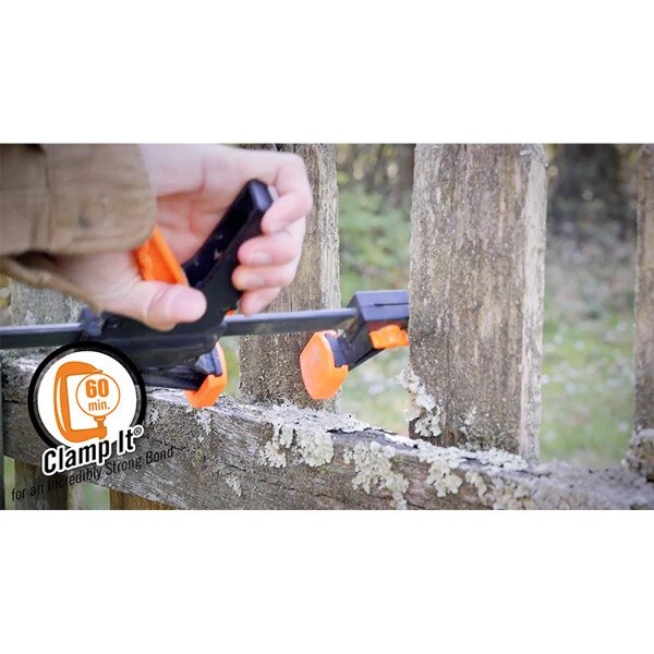 Clamp It: Make sure the clamping pressure is distributed evenly across the surface. Or, if you don't have a clamp, use heavy objects or Gorilla Tape® to achieve the appropriate clamping pressure. For lighter objects, try using rubber bands to hold the pieces together tightly. Clamp objects for 1—2 hours. For best results, allow 24 hours to cure.