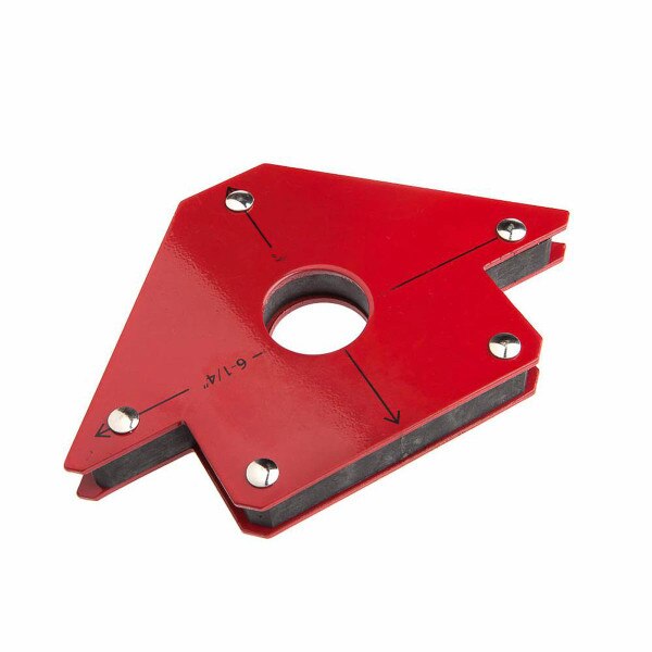 Magnetic Welding Jig with Center Hole, Medium, Lifts up to 50 Lbs. Strong non-switchable magnetic that sticks to any iron object. Includes 45°, 90°, and 135° angles. Excellent "3rd hand" for welding, soldering, assembly, pipe installation, marking, floating and separating thin metal stacks.