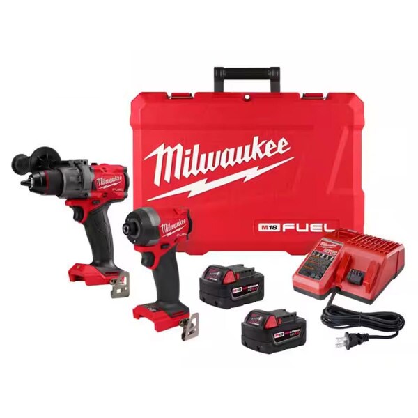 Milwaukee M18 FUEL Brushless Cordless 2-Tool 1/2 in. Hammer Drill Driver & 1/4 in. Hex Impact Driver Combo Kit with Charger / 2 Batteries / Storage Case