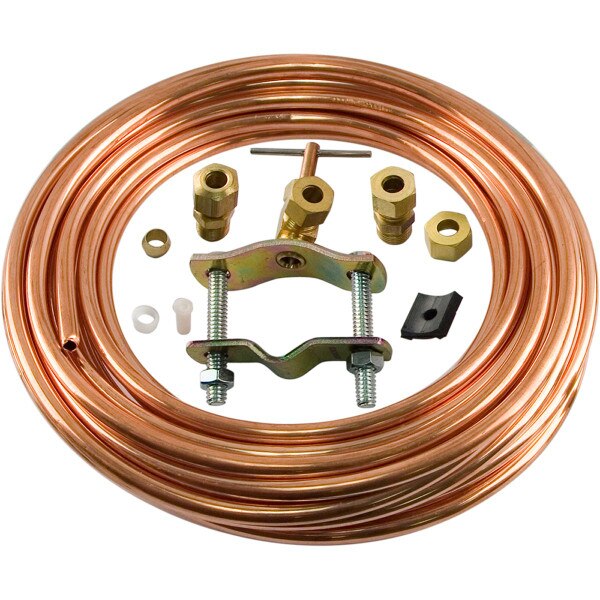 - Includes component parts and instructions necessary for quick, easy installation. Kit contains: 25 feet 1/4” O.D. tubing, 1/4” compression saddle valve, brass tubing inserts (2) and 1/4” compression union.
