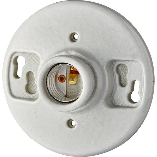 Leviton 660-Watt White Outlet Box Porcelain Lampholder SKU 918545 SELL UNITS: Each $3.29 Quantity discounts available QuantityPrice (0)No Reviews yet Ship 123 Available Pickup in Store - FREE! Select Store to check availability. Selected Pickup Location Quantity -+ Add to Cart Details WhitePorcelainSingle circuit; top wired; 660-Watt Rated Keyless Lamp Holder1-piece glazed porcelain outlet box mount.67 lbs.4.5 in. (L) x 4.5 in. (W) ... Details Back DetailsWhitePorcelainSingle circuit; top wired; 660-Watt Rated Keyless Lamp Holder1-piece glazed porcelain outlet box mount.67 lbs.4.5 in. (L) x 4.5 in. (W) x 2.12 in. (H) Ratings & ReviewsNo reviews availableBe the first to Write a Review