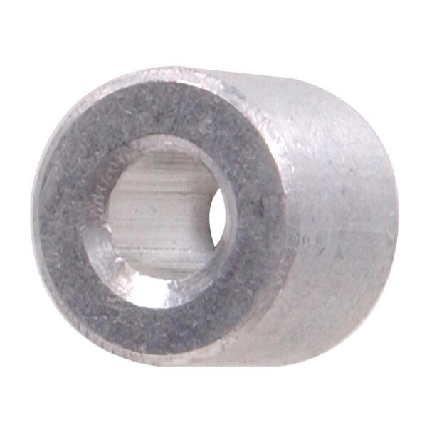 Hillman Wire Rope Ferrules with aluminum finish. Available in several sizes. Intended for light duty uses. Ferrules should be fastened with a swaging tool. Ferrules are used to join two lengths of wire rope together. Stops help prevent movement of rope beyond a point.