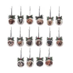Dog Head Decoupage Ball Ornaments, 16 Assorted