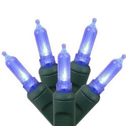 Blue Italian Style LED Christmas Lights String Set, Green Wire