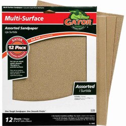 Gator Assorted Grit Multi-Surface Sandpaper, 11 in. x 9 in., 12 Pack