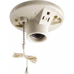 Leviton Glazed Porcelain Lamp Holder with Pull Chain and Outlet